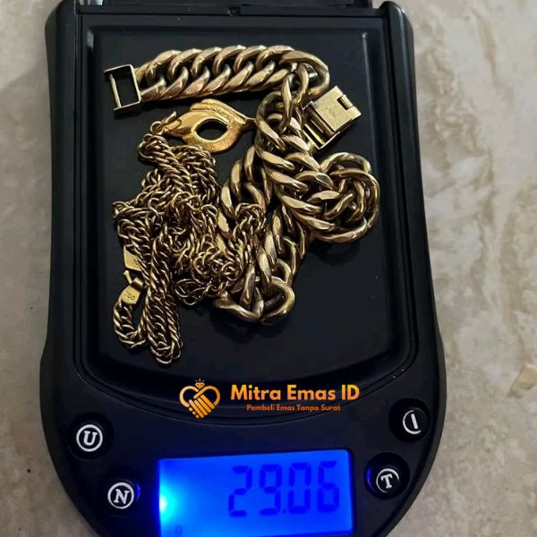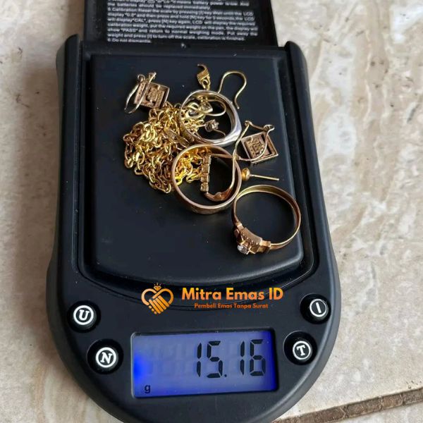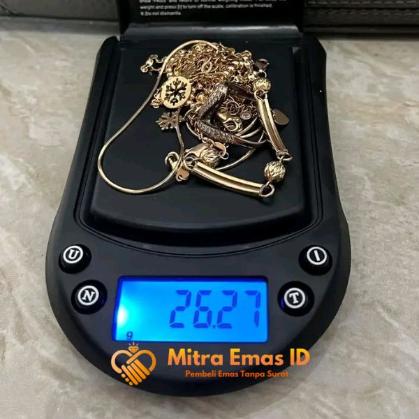 Cek Kode Emas: Lihat bagian dalam cincin atau pengait kalung. Cari angka seperti 375 (8K), 700 (16K), atau 750 (18K). Ini membantu Anda mengestimasi harga.